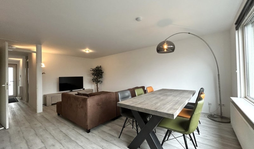 Het appartement is gelegen op de tweede verdieping, bereikbaar via de trap of de lift. Het is op de bovenste verdieping. Je komt het appartement binnen in de hal met een toilet, badkamer en aan beide zijden een slaapkamer. De woonkamer is ruim en licht. Er staat een grote L-bank met grote televisie. Grote eettafel voor zes personen. De open keuken is voorzie...... Als je verder klikt kom je bij een nieuwe pagina met uitgebreide informatie over de huurwoning en met de directe contactgegevens van de beheerder