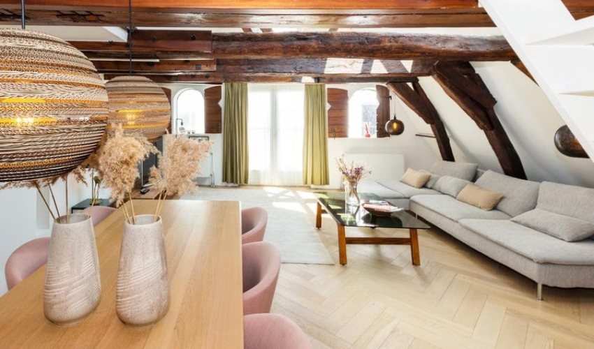 NEEM DIRECT CONTACT OP VIA DE ADVERTENTIE EN PLANNEN UW AFSPRAAK DIRECT Uniek en charmant appartement in een 17e-eeuws monumentaal gebouw, gelegen in een rustige straat in het centrum van Amsterdam! Dit volledig gemeubileerde appartement van ongeveer 94 m2 (105 m2 vloeroppervlak vanwege het schuine dak) met speelse indeling is gelegen op de twee bovenste verdiepingen van het gebouw, heeft een ruime woonkamer met open keuken en een mooie houten balkenstructuur van het dak in het zicht, twee ...... Als je verder klikt kom je bij een nieuwe pagina met uitgebreide informatie over de huurwoning en met de directe contactgegevens van de beheerder