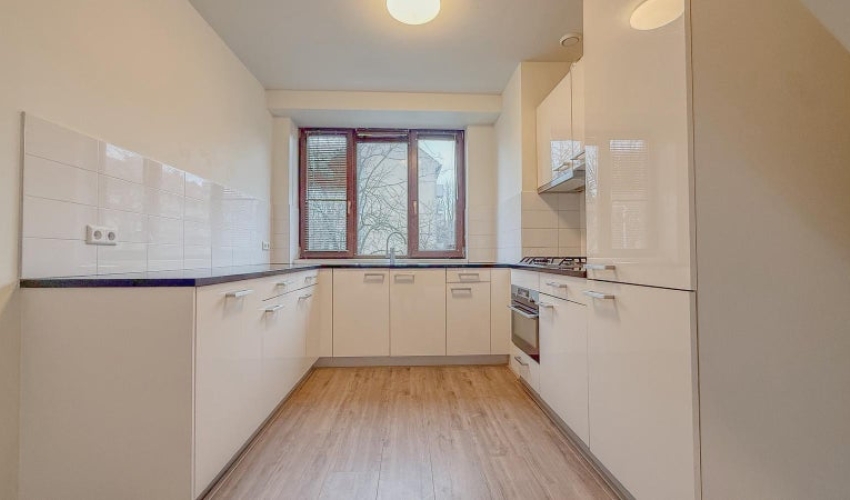U komt binnen in de hal, welke u toegang geeft tot een ruime lichte woonkamer en separaat toilet. In de woonkamer bevindt zich een open keuken. De keuken is volledig gerenoveerd en voorzien van alle luxe inbouwapparatuur (ruime koelkast & vriezer, oven, vaatwassen, gasfornuis). Via de woonkamer treft u ook een fijn balkon aan de achterzijde van de ...... Als je verder klikt kom je bij een nieuwe pagina met uitgebreide informatie over de huurwoning en met de directe contactgegevens van de beheerder