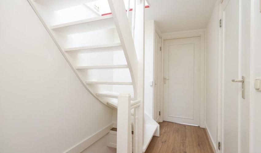 Entree van het appartement, via de trap naar de 3e verdieping. 3e verdieping:
