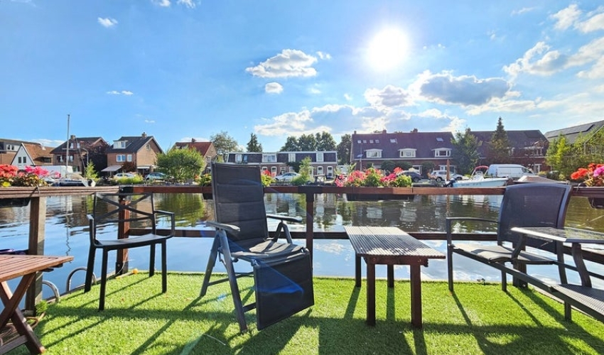 GESCHIKT VOOR DELERS Gemeubileerde woonboot aan het water met 2 slaapkamers met terras en eigen aanlegsteiger. Indeling:
