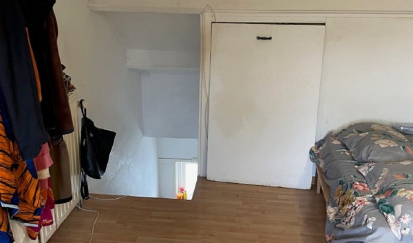 Kamer Haagdoornstraat Arnhem Leuke, ruime zolderkamer in een huis nabij het centrum van Arnhem met in totaal 4 bewoners. Er is een gezamenlijke woonkamer, een toilet op de begane grond, een badkamer met douche en tweede toilet, een tuin en een fietsenberging. De kamer is voorzien van een laminaatvloer. In de kamer is nog een ruime bergruimte achter een schot.