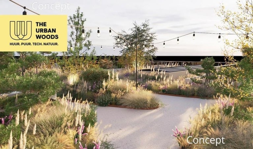 The Urban Woods Appartement: The Treehouse 42 m² + 350 m2 gedeelde ruimten 2 kamer appartement 2 balkons Ongemeubileerd Uniek concept