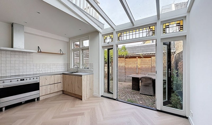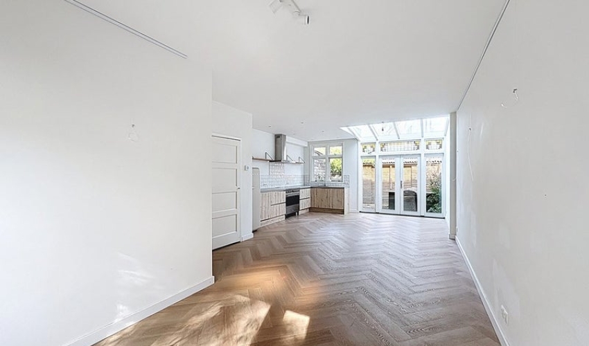 Lambrecht van Dalelaan 9A, Haarlem / Ramplaankwartier (ca. 82m²) € 2.350,- excl. G/W/E In de geliefde buurt, het Ramplaankwartier in Haarlem vindt u deze goed onderhouden eengezinswoning. De woning beschikt over een lichte woonkamer die met openslaande deuren toegang biedt tot de achtertuin met berging, het heeft een moderne keuken met boven één ruime slaapkamer en twee kleinere kamers. Er is genoeg ruimte om zowel in de voor- als achtertuin lekker van de zon te genieten. De keuken is uitgerust met diverse inbouwapparatuur, waaronder een vaatwasser, een grote inductiekookplaat, een Smeg koel-vriescombinatie en een zeer ruime Smeg oven. In de keuken is voldoende opbergruimte aanwezig, ook is er nog een ruime voorraadkast. Daarnaast bevindt zich op de begane grond een separaat toilet. Op de eerste verdieping bevinden zich drie slaapkamers: één ruime hoofdslaapkamer en twee kleinere kamers die ideaal zijn als kinderkamer, werkkamer of inloopkast. De badkamer is voorzien van een douche, een wastafel met wastafelmeubel, een wasmachine en een droger. Tevens is er nog een terras dat te bereiken is via de badkamer. De woning ligt in een prettige, kindvriendelijke buurt, op loopafstand liggen diverse winkels, het NS station van Overveen en met 10 minuten fietsen zit je in het centrum van Haarlem. Voor de natuurliefhebber is er ook goed nieuws, de woning ligt op steenworpafstand van Landgoed Elswout, Brouwerskolkje, Kraantje lek en het strand van Bloemendaal. Ook ligt de woning gunstig ten opzichte van de uitvalswegen richting Amsterdam, Alkmaar en Schiphol. Bijzonderheden: