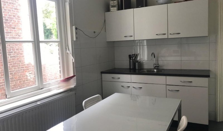 MAASTRICHT - STUDENTENKAMER - GEMEUBILEERD Moderne, fris gemeubileerde kamer in statig herenhuis op toplocatie in hartje Wyck. In een rustige straat, en toch direct in het bruisende stadsleven van Maastricht met het Centraal Station op enkele minuten lopen. Het huis heeft een bijzondere status. Mooie, hoge plafonds, ruime tuin aan de achterzijde, voldoende gelegenheid om de fietsen te stallen en een gezamenlijke eetkeuken. VIERDE VERDIEPING