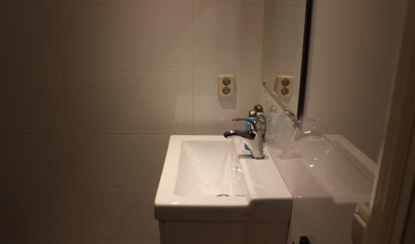 Verder een zitje, werktafel, TV en een tweepersoonsbed. De badkamer en wc moeten gedeeld worden met 3 andere bewoners. ook is er een wasmachine en wasdroger voor gezamelijk gebruik.