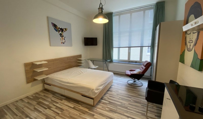 Gemeubileerde kamer op de 1ste verdieping. De kamer heeft een keukenblok voorzien van een 3 pits kooktoestel, afzuigkap, magnetron en ijskast.