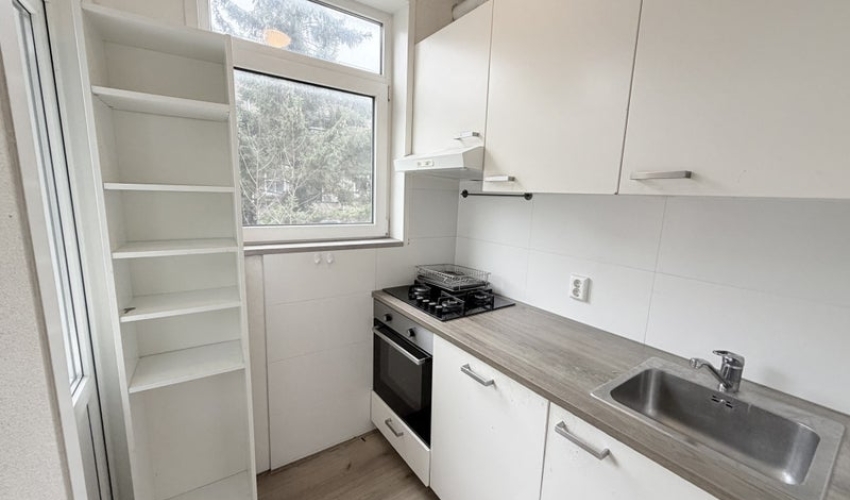 Entree op de 1e etage met toegang tot de hal. Vanuit de hal is er toegang tot de woonkamer en de dichte keuken. De gehele woning is voorzien van een laminaatvloer. De keuken is uitgevoerd als gesloten keuken en beschikt over een gasfornuis, spoelbak ...... Als je verder klikt kom je bij een nieuwe pagina met uitgebreide informatie over de huurwoning en met de directe contactgegevens van de beheerder