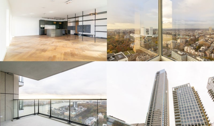 BIZAR WONEN! Wij bieden vanaf 01-07-2026 deze volledig GEWACHTE (& deels gemeubileerde) zeer luxe appartement met twee slaapkamers, twee zonnige BALKONS, interne en externe OPSLAG en een PRIVÉ PARKEERPLAATS aan in de meest premium locatie in het mooiste district van Rotterdam voor verhuur! Het appartement is gelegen op de 33STE VERDIEPING, met panoramisch uitzicht rondom! Het appartement heeft een super strakke afwerking (hoogwaardig vloeren / strak geschilderde muren / moderne verlichting...... Als je verder klikt kom je bij een nieuwe pagina met uitgebreide informatie over de huurwoning en met de directe contactgegevens van de beheerder