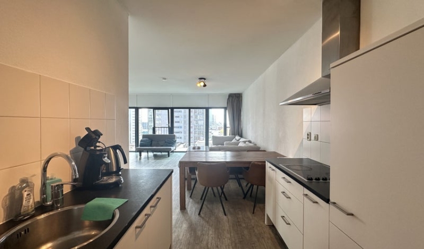 Volledig gemeubileerd 2-kamer appartement op de 10e verdieping in de Red Apple aan de Scheepmakerspassage. Het appartement is gelegen in het centrum van Rotterdam en beschikt over fantastisch uitzicht.Het appartement is gelegen op loopafstand van diverse winkels, restaurants en supermarkten waaronder supermarkt Spar en de populaire regio Oude Haven. Ook het openbaar vervoer is uitstekend met metro-, bus- en treinstation Blaak op steenworp afstand,. Indeling