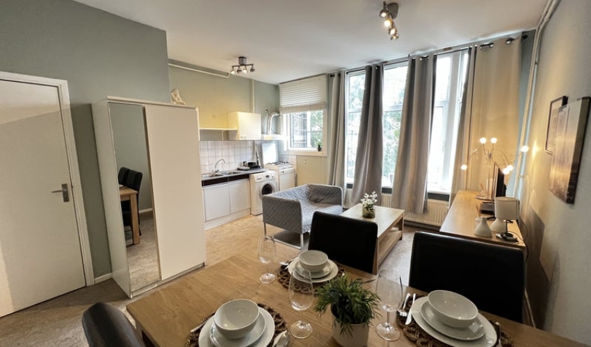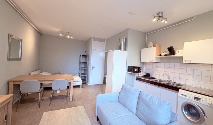 In Rotterdam-Kralingen, op een uitstekende locatie, bevindt zich deze volledig gemeubileerde studio op de tweede verdieping aan de achterzijde van het gebouw.