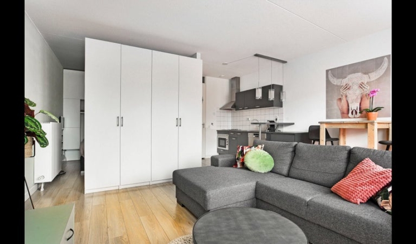 Volledig gemeubileerde, moderne, instapklare studio met privé beveiligde parkeerplaats, energielabel A en Frans balkon.